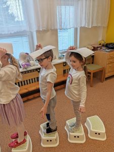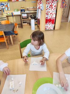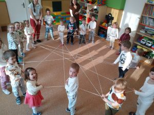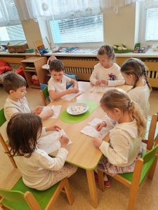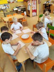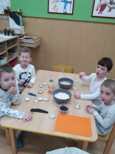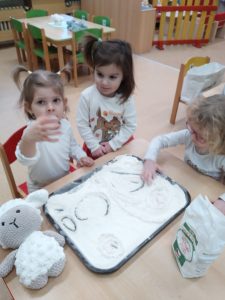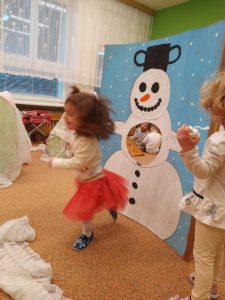 Venku je zima, děti si užily dva dny sněhu, jízdu na sáňkách i klouzání na ledě. Jen ten sněhulák se ještě nepovedl. Nevadí. I tak jsme oslavili bílý den. Ve velké třídě děti vystřihovaly vločky, stavěly z kostek cukru komímy a ohrady. Bílé papíry použily jako kry, po kterých přecházely ledové moře. Stavěly doupátka ze záclon a látek, hrály si se zvířátky. Malé děti kreslily prstíkem do mouky, házely po sněhulákovi papírové koule a spřádaly bílou pavučinku přátelství. To je jen malé ohlédnutí….