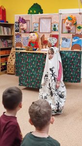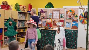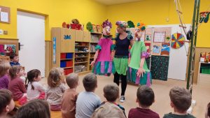 Za dětmi do mateřské školy přijelo divadlo Kejkle a zahráli nám pohádku: SMOLÍČEK A JEZINKY. Společně jsme držšli palce, aby se Smolíčkovi nic nestalo. Jezinky malého neposluchu odnesly, ale jelen Smolíčka zachránil.