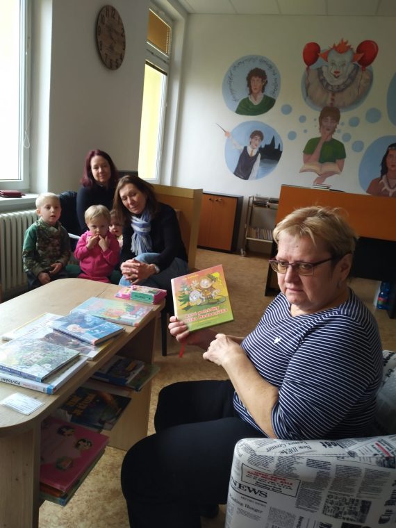 Navštívili jsme i naši knihovnu ve Vojkovicích, která se nachází v patře Obecního úřadu. Knihovna je mnohem menší, ale velmi útulná. Na stěnách jsou obrázky, které vytvořili studenti z Vojkovic. Děti hádaly, o které pohádky se jedná, a snadšením poznávaly postavy i příběhy.