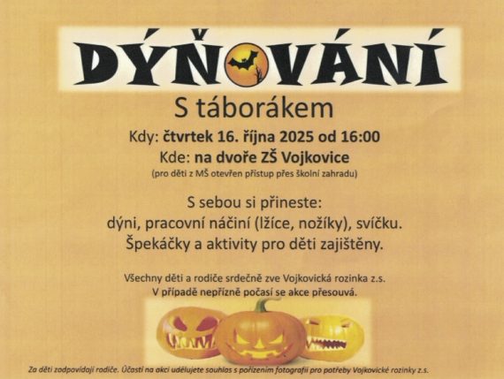 Provoz školní jídelny 1. Školní jídelna zajišťuje stravování pro děti MŠ, žáky ZŠ a zaměstnance Základní školy a Mateřské školy Vojkovice, příspěvkové organizace. Všichni jsou řádně přihlášeni. Kapacita školní jídelny je 120 strávníků. 2. Stravné se hradí vždy do 25. dne běžného měsíce: – bezhotovostně na účet školy č. 115-8031690207/0100 […]